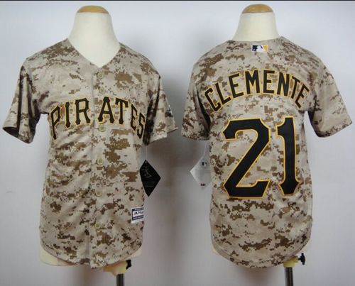 Pirates #21 Roberto Clemente Camo Cool Base Stitched Youth MLB Jersey
