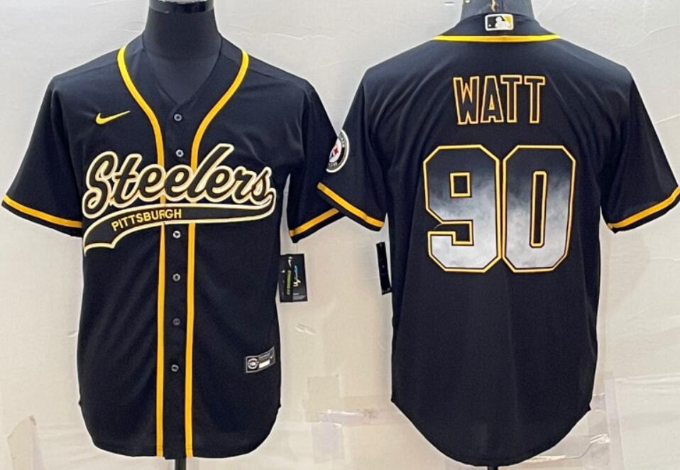 Pittsburgh Steelers Customized Black Gold With Patch Cool Base Stitched Baseball Jersey
