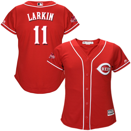 Reds #11 Barry Larkin Red Alternate Women Stitched MLB Jersey