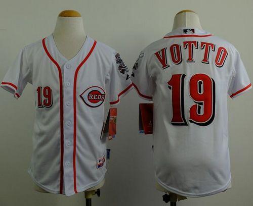 Reds #19 Joey Votto White Cool Base Stitched Youth MLB Jersey