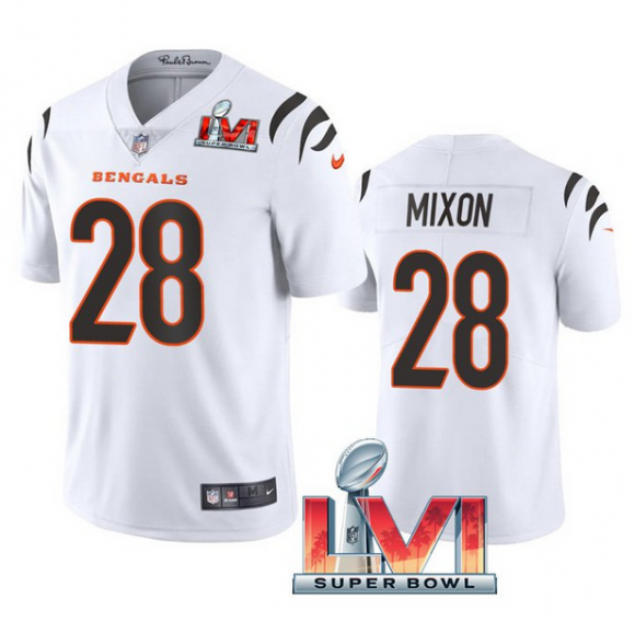 Women Cincinnati Bengals #28 Joe Mixon 2022 White With C Patch Super Bowl LVI Vapor Limited Stitched Jersey(Run Small)